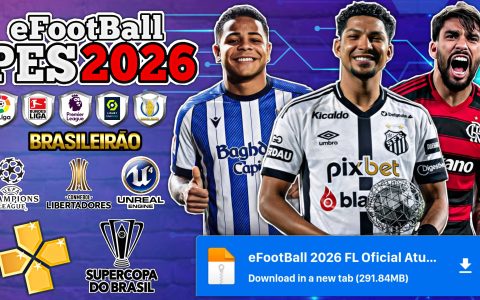 Atualizações: eFootBall PPSSPP eFootBall PES 2025 Lite eFootBall PES 2025 PPSSPP eFootBall PES 2026 eFootBall PES 2026 PPSSPP JOGOS VIA MEDIAFIRE godcardozo 4 minutos atrás 1Lançou! NOVO PES 2026 Sul-americano PPSSPP Atualizado Gráficos HD Offline Via MEDIAFIRE V2 Ps4